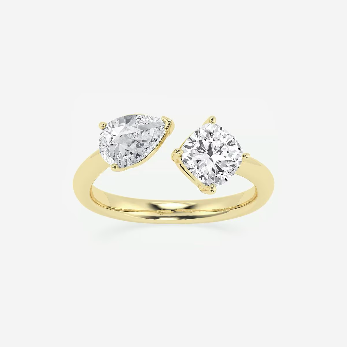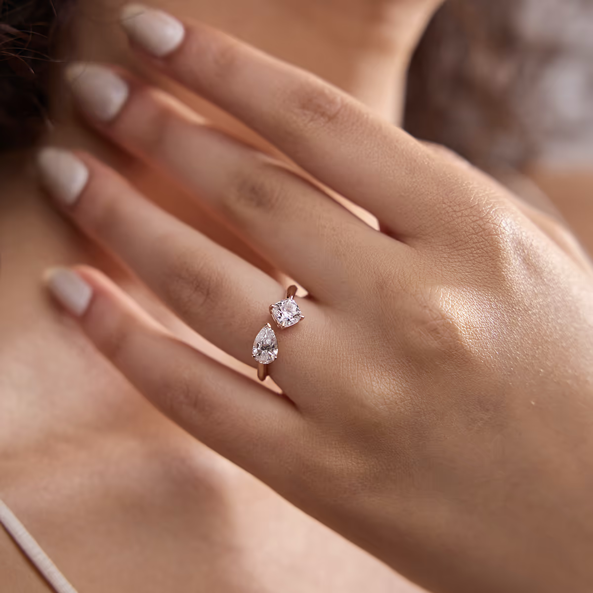 Minette reimagines the classic band with a modern Toi et Moi twist. Featuring two distinct diamonds in an open gold design, this ring balances romance and individuality for a chic, contemporary style.