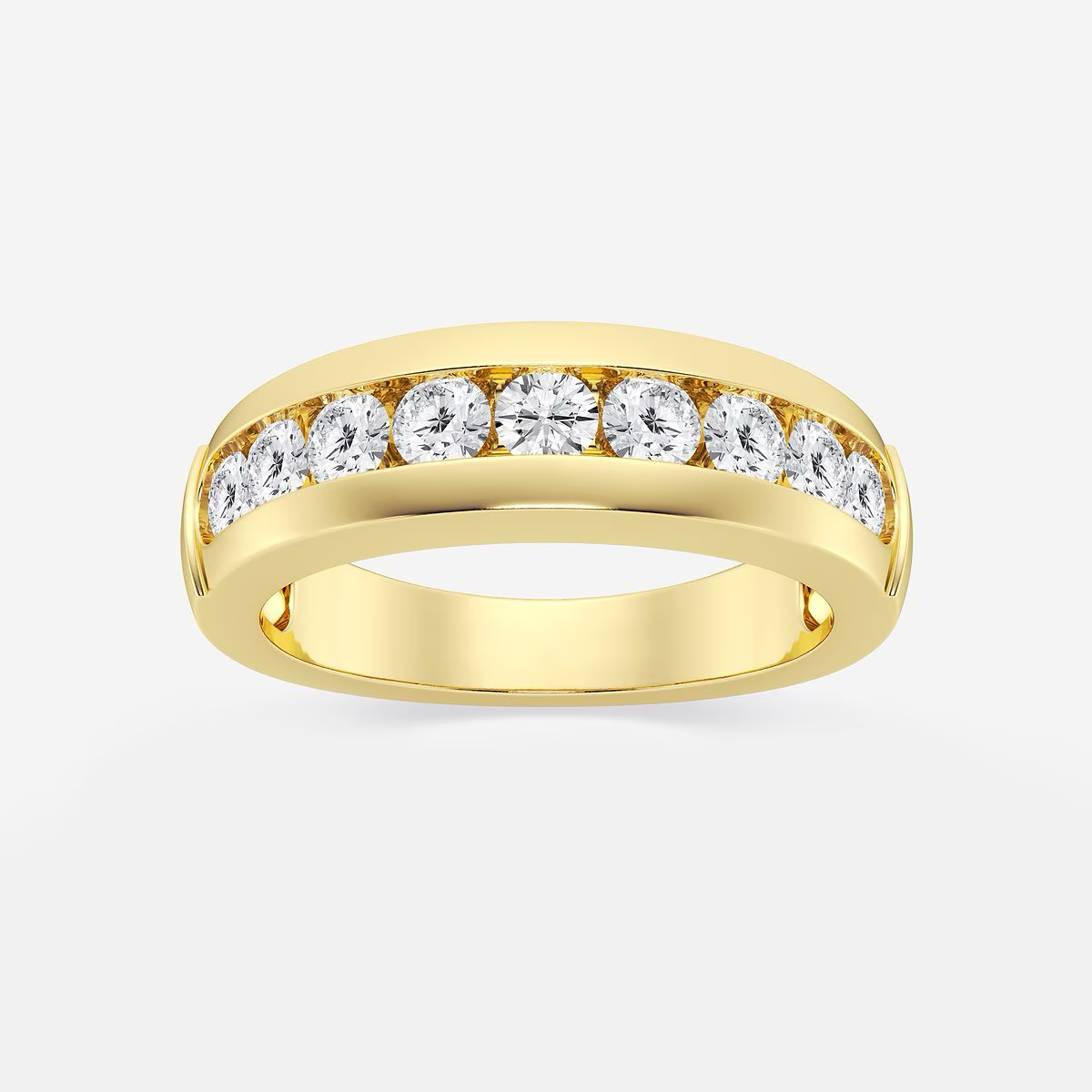 The Nine-Stone Men's Ring features a stunning arrangement of round lab-grown diamonds across a bold band. This design symbolizes strength and continuity ideal for grooms, milestones, or personal achievements.